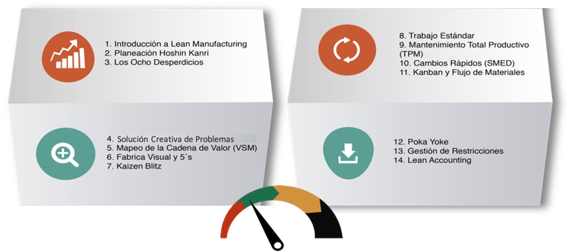 Desarrollar líderes de implementación en Lean Manufacturing que apliquen las herramientas lean para el mejoramiento de sus procesos mientras crean un ambiente de liderazgo en los negocios, enfocándose en mejorar la productividad mediante la reducción de desperdicios, logrando excelentes niveles de competitividad y rentabilidad en las empresas.